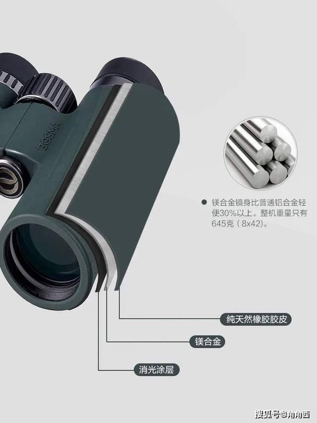 轻量化镁合金材质,坚密且轻量;高强度旋升眼杯,不易让其移位;整机充氮防水,达到博冠防水等级7级,强力防水防雾。