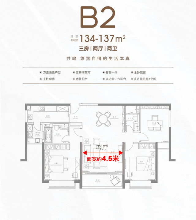 项目在售建面约134-154㎡大三房稀缺性突出,未来竞争少、需求大,易走出独立行情。