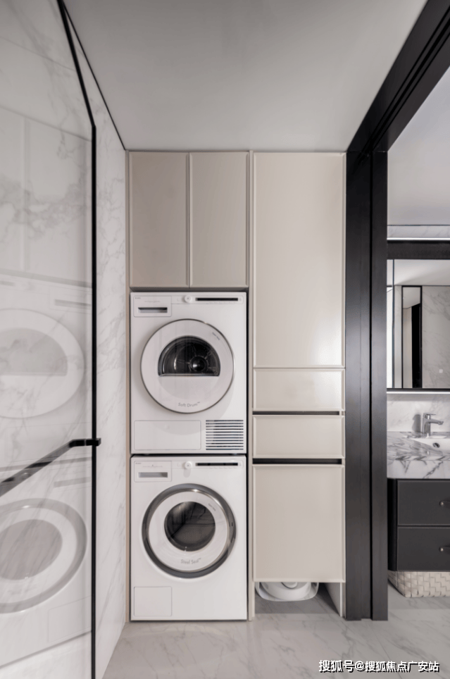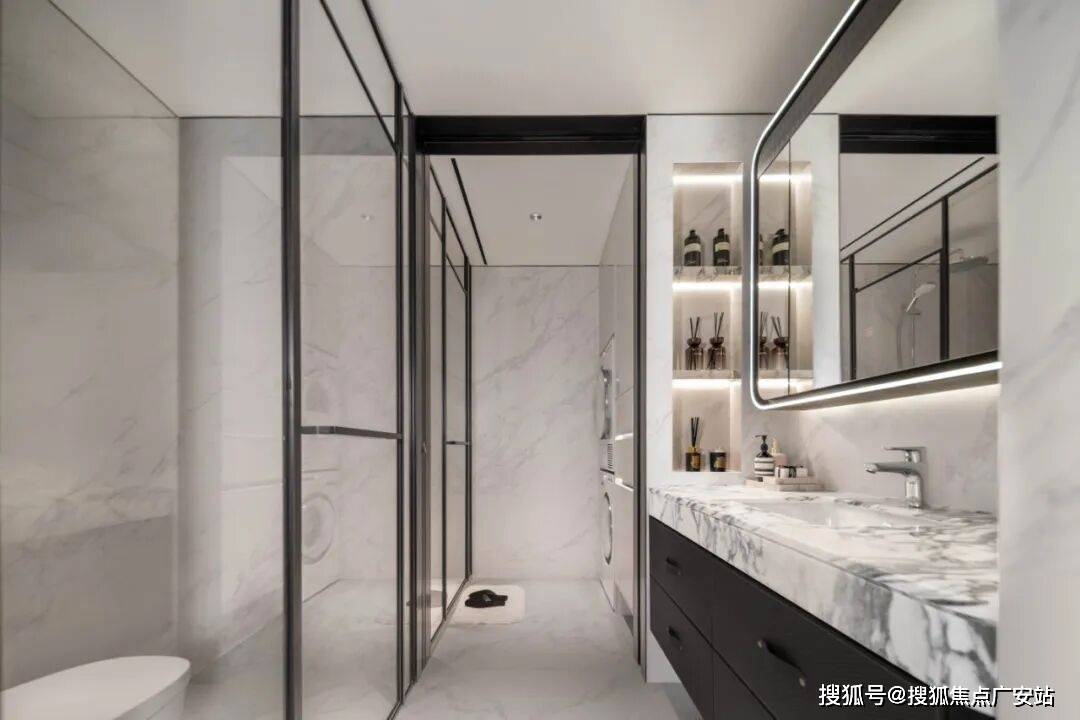公卫打造独特的四分离系统,实现独立洗漱台、卫生间、淋浴间、洗衣区互不打扰,将酒店化体验引入住宅。
