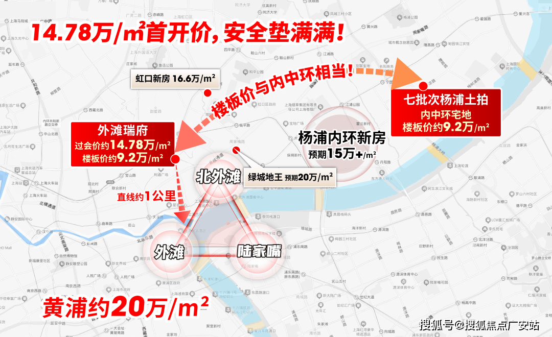 值得关注的是,上海七批次土拍中,杨浦内中环宅地的楼板价已达约9.2万/㎡——这一价格,与外滩瑞府楼板价相当!