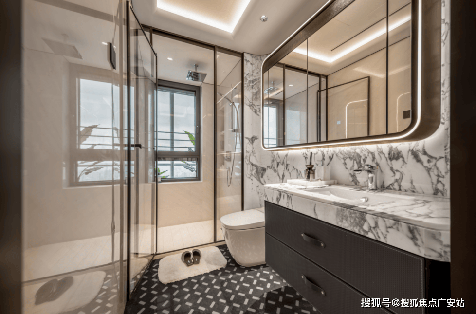 公卫打造独特的四分离系统,实现独立洗漱台、卫生间、淋浴间、洗衣区互不打扰,将酒店化体验引入住宅。